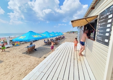 - автостоянка, беседки, детская игровая площадка, мангал, интернет Wi-Fi, навес на пляже, пресная вода в номерах,