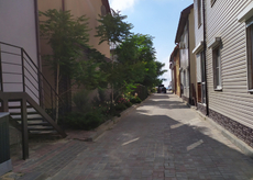 На 1-м этаже два номера, может разместиться до 5 человек. На территории находится магазин, большая детская площадка/раскладушка/Номер состоит из спальни и большой кухни-студии с большим диваном.